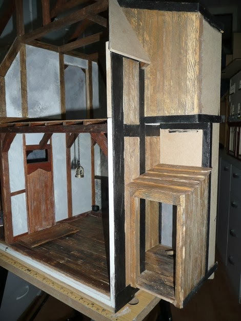 Gaaf toch. Ik zag in Frankrijk een keer dat ze zoiets buiten het kasteel lieten hangen en het zo naar beneden viel. Lol. Er liep wel een watertje langs, dus ik hoop dat dat vroeger hoger stond. Je zal het maar op je kop krijgen.